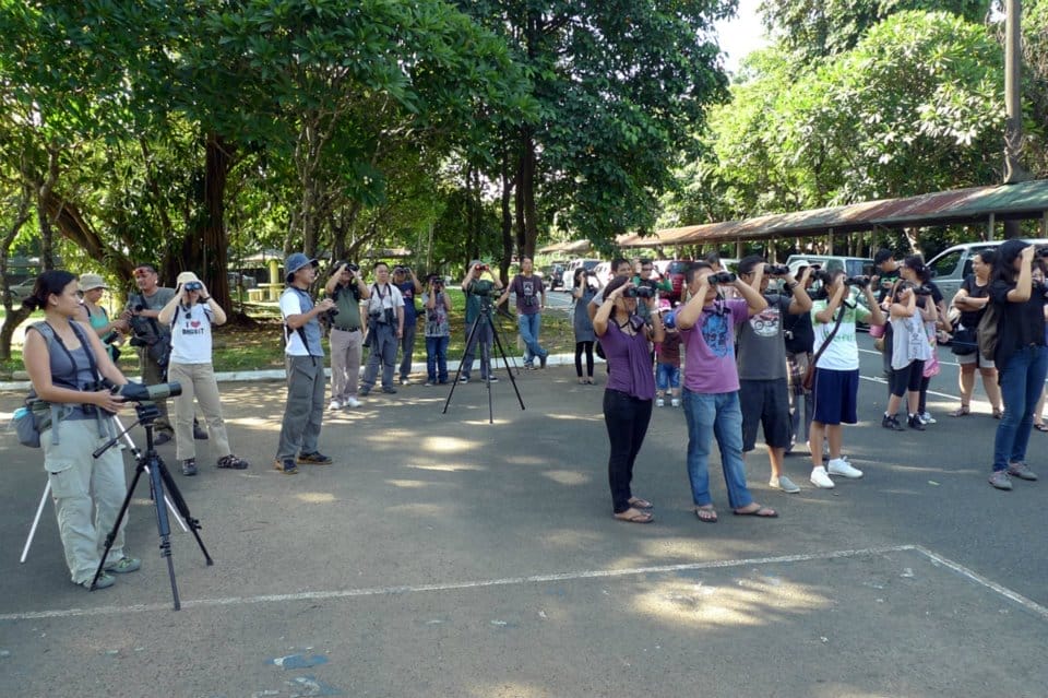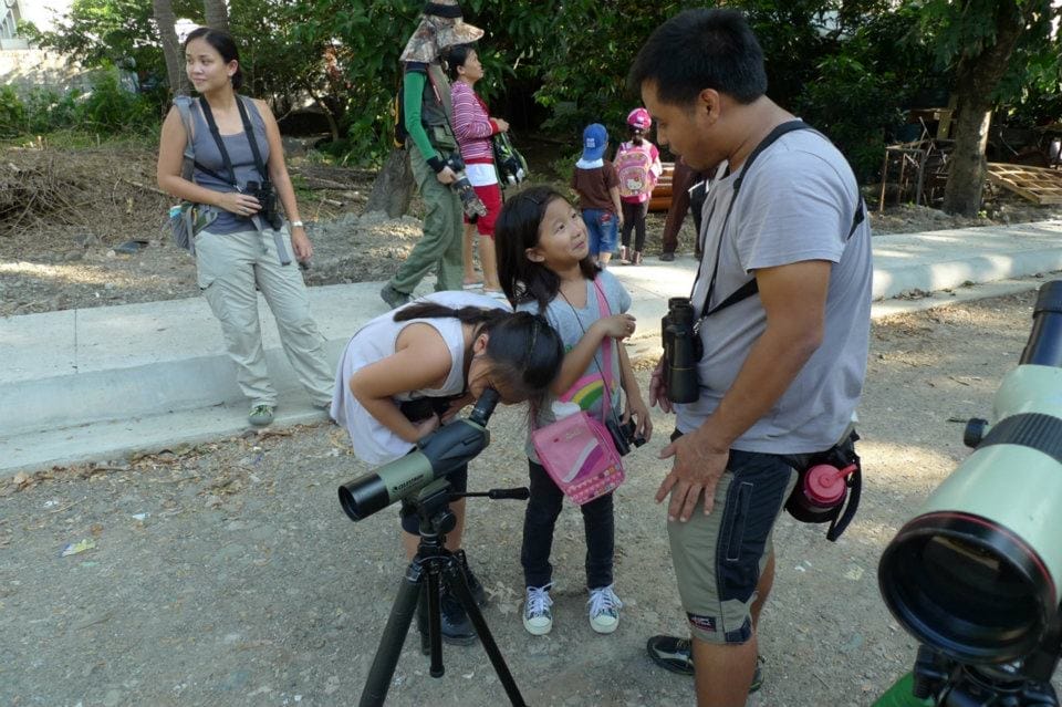 WBCP member Jops Josef talks about the Zebra Dove on the scope with some of the kids who participated in the guided trip. Photo by Jun Osano.