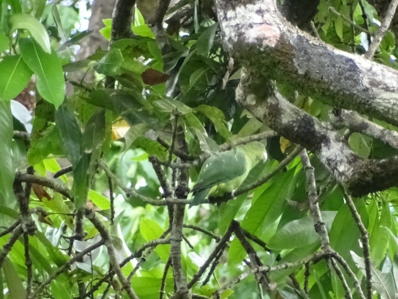 Our guides separated from us in camp 2. But we weren’t in any way bored. In camp 2 we could finally see the anticipated Scarlet-collared Flowerpecker, a Mindoro endemic. There were again Mindoro Hornbills and White-bellied Woodpeckers. A Mangrove Blue Flycatcher. A few Coleto and some Crested Serpent Eagles. On our hike back to Camp 1 we bumped into an Oriental Cuckoo. There were six birds still high on our agenda. Two of those were parrots. Not too far from camp 2 going back and near the large intact primary forest we got to see several Blue Crowned or Mindoro Racket tail parrots. A beautiful experience. Noisy and flying very fast. Once they disappear in a tree, even though you see which one, they are really hard to find because of their color. We observed them for over an hour until our necks were stiff. They didn’t leave the area until then and they flew back into the primary forest. Again we saw White-bellied Wood peckers and Bar-bellied Cuckoo Shrikes. And three Coppersmith Barbets.