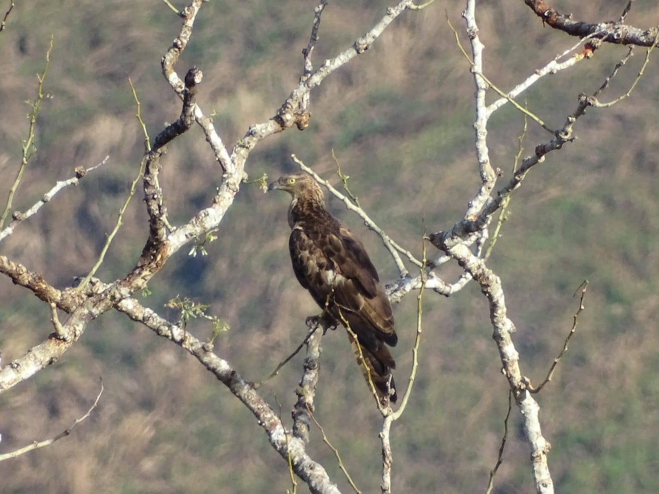 The next day we went prospecting the nearby forest. But it appeared heavily disturbed and very hard to hike through as the paths were completely overgrown. Almost no birds seen. There were some calls we couldn’t place, probably of imperial pigeons. We could however see a wild pig fleeing and we bumped into two big deer and a few tamaraw when leaving the forest. On the hike back in the grasslands we could see a Changeable Hawk Eagle and Crested Serpent Eagle.