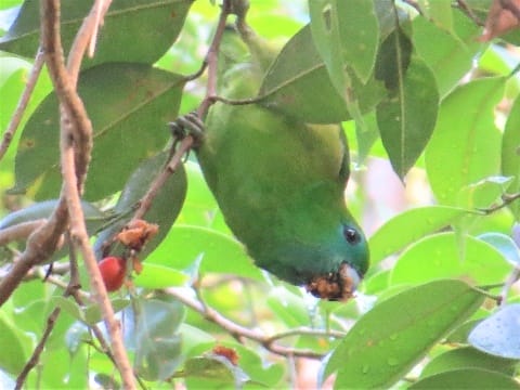 May 8, 2021 is Global Big Day and what better way to celebrate than birding at Masungi Georeserve! The team is composed of Kelly Hageman, Diuvs de Jesus, Jasmin Meren, Art Melicor, Riza Melicor, and me led by Linda Gocon. Four hours yielded 26 species, a good number, but we could have had more had it not rained. The downpour didn’t dampen our spirits though. We saw a very cute Guaiabero quietly having breakfast upside down. Scale-feathered Malkohas also came out in the open and you would think we were a bunch of newbie birders as excitement pervaded the air at the sight of them! Of course, no trip to Masungi is complete without our all-time favorite Indigo-banded Kingfisher traversing the stream beside the clubhouse. I took 50 photos and 6 videos!