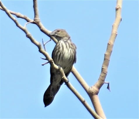 The highlight for me was this bird we identified as a Gray-streaked Flycatcher. I took several videos because I was fascinated how noisy it was and I was thinking this is the first time I have ever heard a GSF sing its heart out. Well, turns out it’s not a flycatcher but a Striped Flowerpecker!