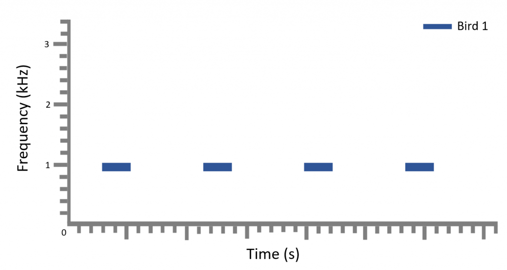 This account of the barbet aligns with the global perception of the Coppersmith Barbet. The barbet obtained its name from how similar its call resembles a hammer hitting metal. Its sound has been described as kuk-kuk-kuk internationally, pok-pok-pok in Filipino, or fu by the T’boli. Here we can see that Coppersmith Barbet emits short bursts of the same low-pitched, monotonous sound, with constant speed and pitch that are slow enough to be counted.