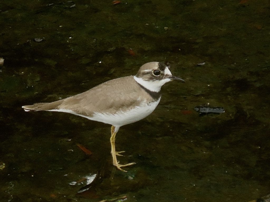 While hemming and hawing about what to do next I saw one of the sandpipers walking towards the plover, which was busy preening, and noticed that the two seemed to be the same size. This was strange, I thought. Having seen Little Ringed Plovers numerous times before I knew it should be smaller than the sandpiper. I pointed this out to Albert and asked Lu-Ann to take videos of the sandpiper and plover.