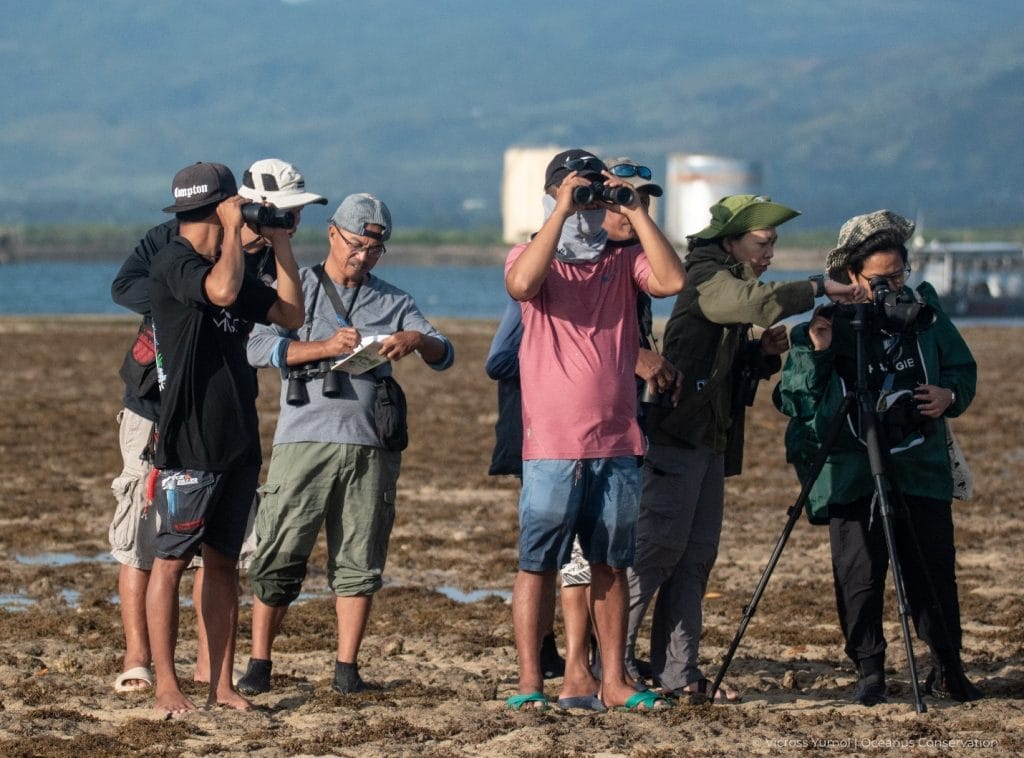 Oceanus Conservation invited WBCP, represented by VP Karen Ochavo and Secretary Nikdye Realubit to conduct a training on bird identification for ecotourism and conservation in Bais City (Negros Oriental) as part of Oceanus’ Community-led Mangrove and Migratory Birds Conservation Project. Fifteen members of the United Fisherfolk Association of Barangay Capiñahan participated in the training, which covered topics on the basics of birdwatching, bird identification, and the importance of a variety of wetland habitats for migratory waterbirds. The participants then proceeded to the Looc fishponds to practice what they learned; while there were a few birds, there were enough species that allowed them to differentiate between waders such as Black-winged Stilts, Grey-tailed Tattler, Marsh Sandpiper, Common Sandpiper, and the many species egrets. The next day, the participants, together with Oceanus Conservation Co-founder and Director Camille Rivera and Project officer Vicross Yumol, who are also new members of WBCP, took boats to Talabong Island to further allow the participants, mostly Bantay Dagat or Marine Rangers, to practice spotting and identifying waterbirds. Plovers, egrets, herons, kingfishers, and a solitary Philippine Duck flying out of the mangrove lagoon, were seen. The training will continue as Oceanus Conservation acquires more binoculars and a new spotting scope to develop birdwatching as one of the ecotourism activities in Talabong Island. Photos provided by Oceanus Conservation.