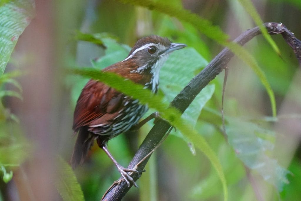 Further down the road, we would periodically hear tailorbirds. We stopped to try for the Rufous-fronted Tailorbird and managed to call in a couple, along with Metallic-winged Sunbirds in the same area. At a separate area, we worked on the White-browed (Black-headed) Tailorbird. It was stubborn and refused to perch in the open, but Edgar managed a good view of it near ground-level.
